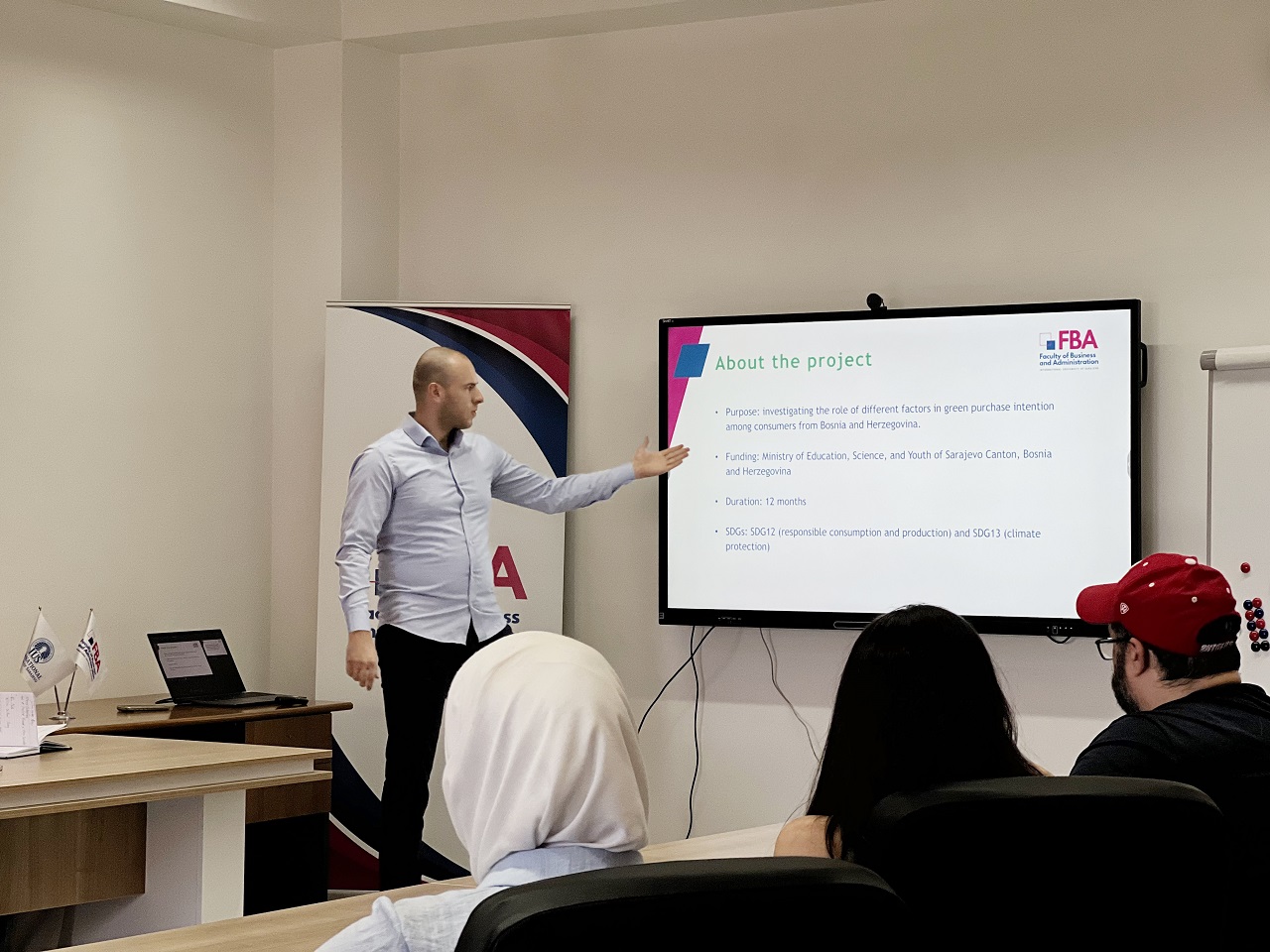 U ponedjeljak, 11. augusta 2025. godine, Fakultet menadžmenta i javne uprave (FBA) organizovao je prezentaciju rezultata istraživačkog projekta pod nazivom „Namjere za kupovinu ekoloških proizvoda: Uloga teorije planiranog ponašanja, brige za okoliš i demografskih faktora”. Projekat, koji je vodio docent dr. Hamza Smajić, realizovan je u saradnji s vanrednom profesoricom dr. Šejmom Aydin, doktoranticom Amilom Ahmethodžić, magistranticom Lamijom Tanović te studenticama dodiplomskog studija Hanan Babić i Selmom Krivokapom.