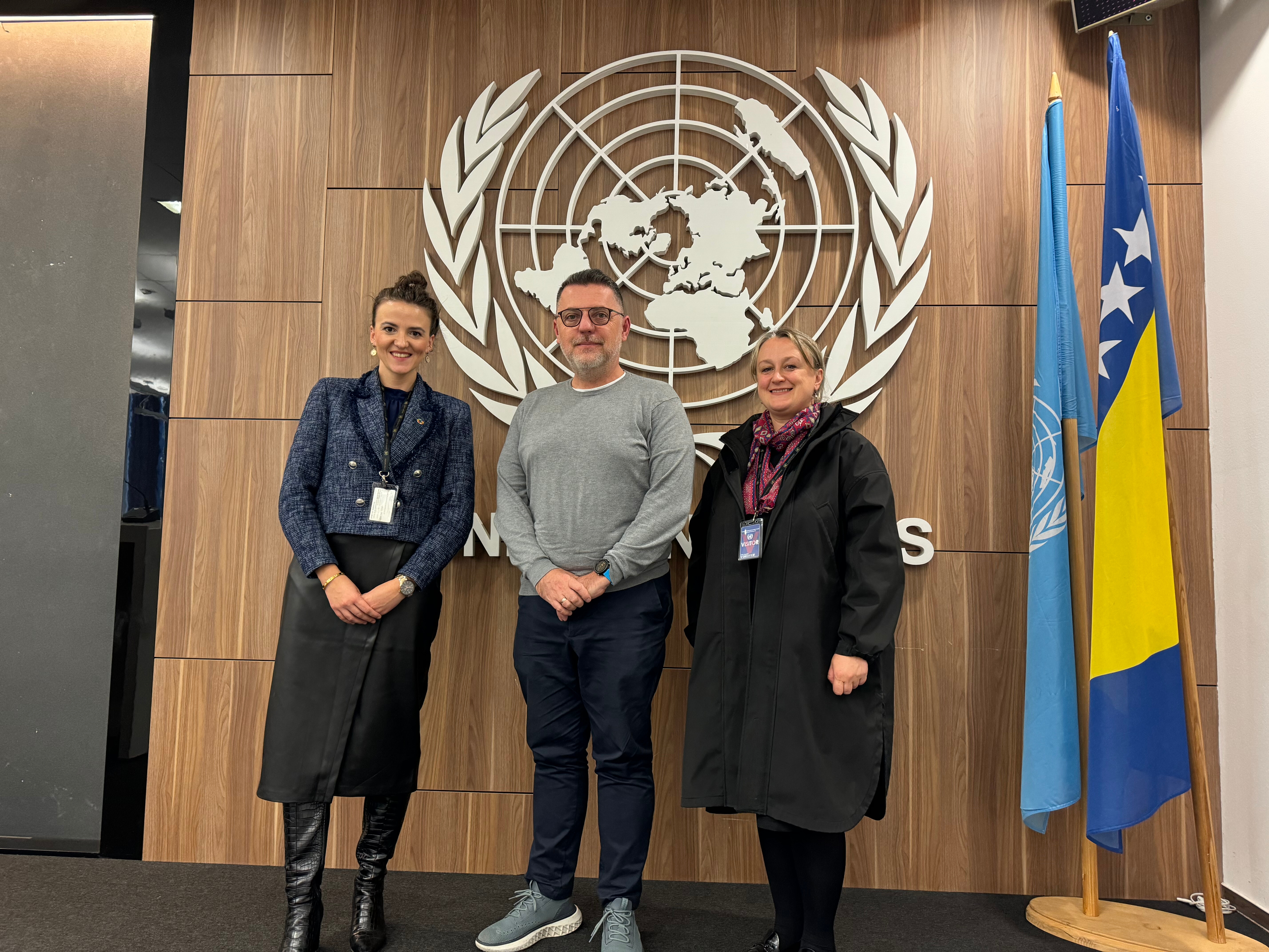 Sürdürülebilir Kalkınma Hedeflerinin İhtisas Komitesi (SDG Komitesi) Başkanı ve IUS İşletme ve Yönetim Fakültesi (FBA) profesörü Yardımcı Doçent Dr. Azra Bičo, Kalite Güvence Ofisi çalışanı ve SDG Komitesi üyesi Lamija Hadžimurtezić ile, SDG'ler alanında geniş bir uluslararası deneyime sahip UNDP uzmanı Emir Adžović ile Saraybosna'daki UNDP merkezinde bir araya gelmiştir.